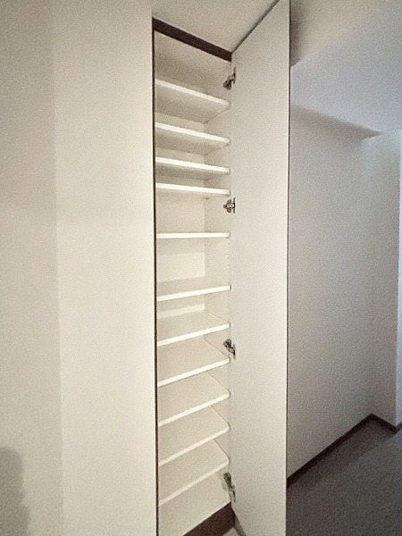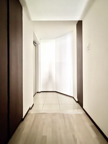玄関は外から室内の様子が見えにくい造りになっています。荷物の受け取り時などにプライベートな部分を見られずに済むと安心ですよね。土間と廊下の段差が少なく、小さなお子様や足腰に不安のある方、小型犬などのペットでも快適にお出かけできますよ。