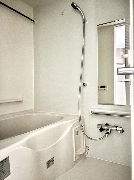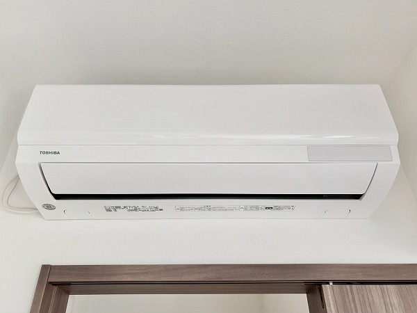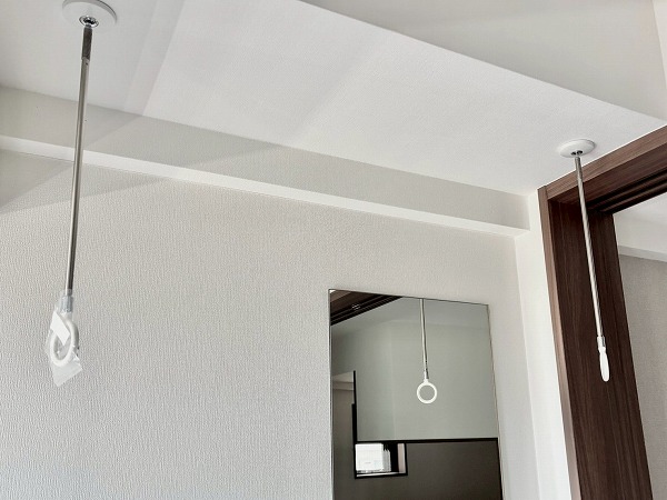 洋室にはまだ注目したいポイントが。ミラーとホスクリーンが設けられていましたよ。ミラーは全身をしっかり確認できるサイズなので、今日のコーディネートを確認するのに役立ちます。ホスクリーンはエアコンの向かいにあり、お洋服が良く乾きそうです。