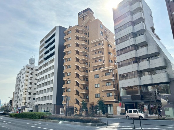 外観は「ライオンズマンション」によく見られるレンガ調とは異なり、落ち着きのある上質なデザイン。重厚感がありながらも洗練された印象を受けました。撮影時には管理人さんと住民の方が会話されている様子も見られ、マンション内の雰囲気の良さやコミュニティのあたたかさが感じられた点も印象的です。