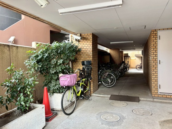 段差解消スロープがあるアプローチ。キャリーバッグやベビーカーでもスムーズに運べます。左手には駐輪場が備わっていました!