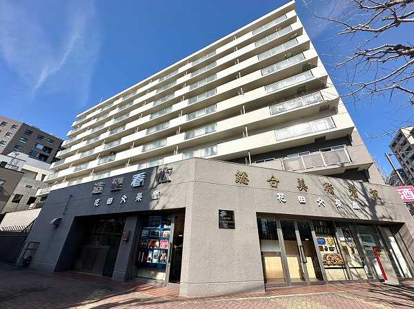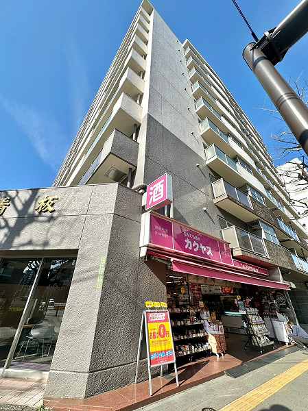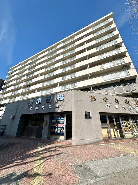 落ち着いた街並みに溶け込む、グレーとベージュの外観が印象的な『イトーピア六義園マンション』。1979年築、地上10階建て・総戸数141戸のスケールを持つレジデンスです。1階には店舗が入っていますが、居住者専用のエントランスが別に設けられているため、住まいとしての落ち着きもしっかり守られています。