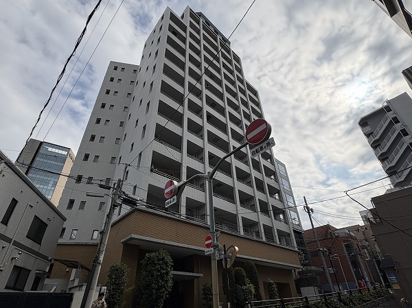 ホワイトとブラウンの外観が目印の『サンクタス本郷』。2002年築のまだまだ新しいマンションです。新耐震基準を満たしており、地震の揺れに強いのが嬉しい◎