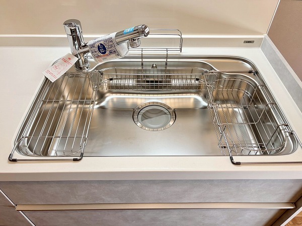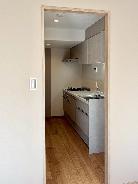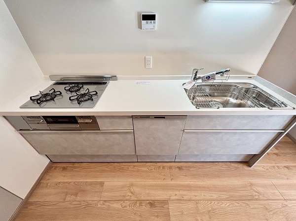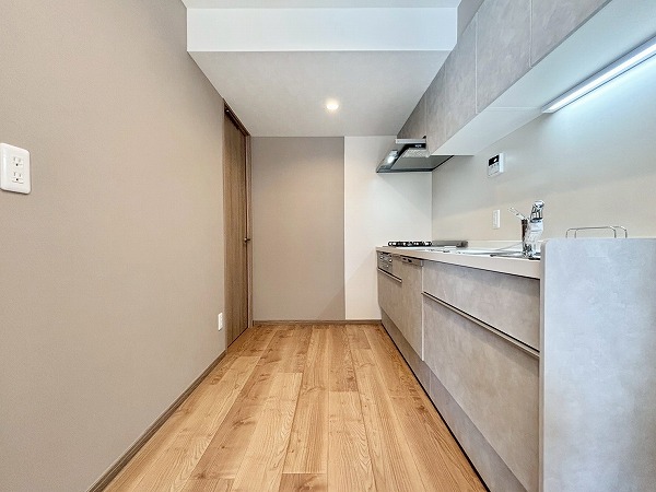 キッチンは幅が広く、ご家族と一緒に使用していてもすれ違う際などにストレスを感じにくいはず。また、リビングダイニングと玄関廊を行き来できるウォークスルー仕様のキッチンスペースで、動線が良いのも魅力の1つ。わざわざ遠回りせずにご移動いただけます。