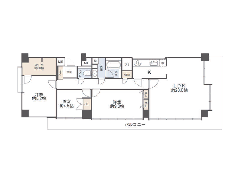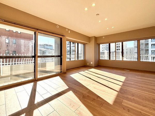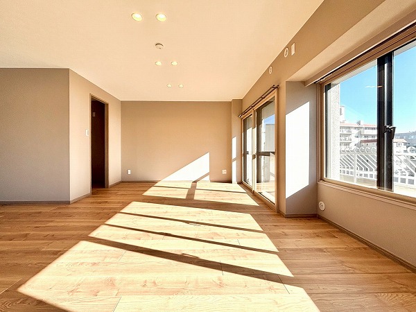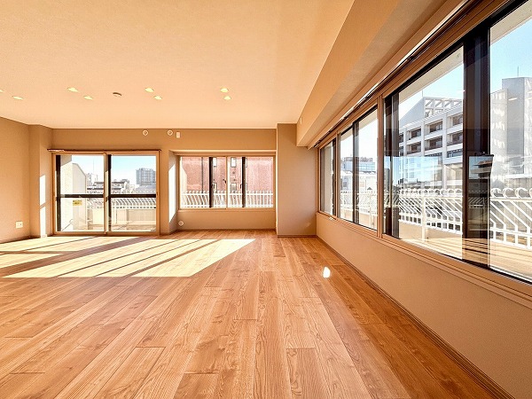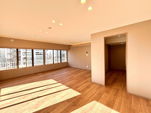 ご家族とのびのび暮らしたいという方にオススメしたいのが、今回の3LDK。専有面積は驚きの104.15㎡!3方角部屋で窓が多くとっても開放的です。新規リノベーションが実施されており、隅々まで綺麗な状態が保たれていますよ。