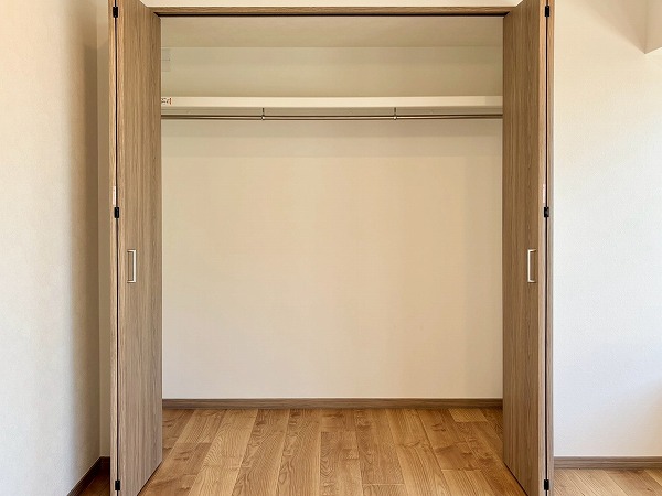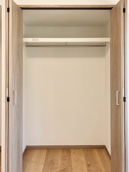 2つ目に大きな洋室は、約8.2帖です。こちらもかなり広さがありますね。しかも、お部屋の奥に設けられたドアを開けると…およそ3.8帖のウォークインクローゼットが広がっていましたよ。お洋服を沢山お持ちの方でもこれなら置き場所に困らないのでは。