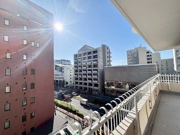 今回のお部屋は大通りである「春日通り」に面しているため、バルコニーに出ると車の走行音が気になります。ただ、全ての窓にインナーサッシが設置されているので室内はとても静かでしたよ◎これなら快適に暮らせますね。