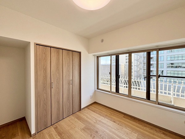 1番大きな洋室はおよそ9.0帖。壁一面に窓があることで、より広く感じました!キングサイズのベッドも余裕で置ける広々空間。デスクやドレッサー、ベビーベッドなどを設置しても良さそうですね。お部屋のサイズに合わせてクローゼットも大きめになっていました。