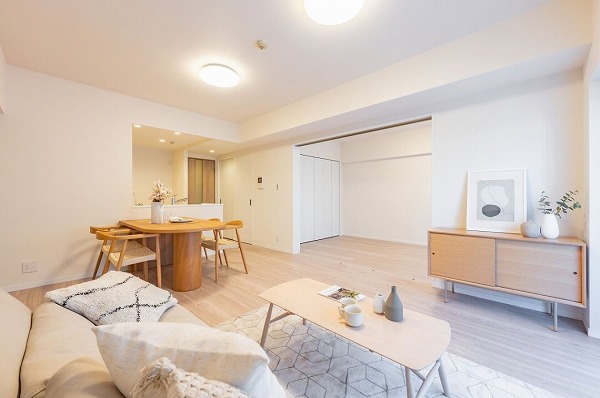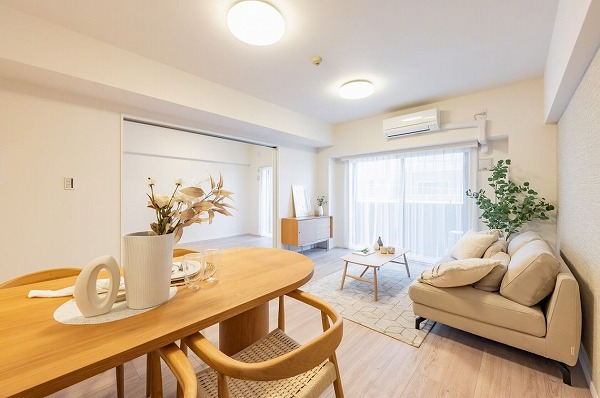 ご紹介するのは3階部分、専有面積68.51㎡の2LDK。室内は新規リノベーションにより一新され、すっきりと整えられた上質な住空間に仕上がっています。各居室が独立したレイアウトで、2人暮らしでも程よい距離感を保てる点も魅力的。落ち着いた色合いで統一された内装が、日常に穏やかな時間をもたらしてくれそうです。