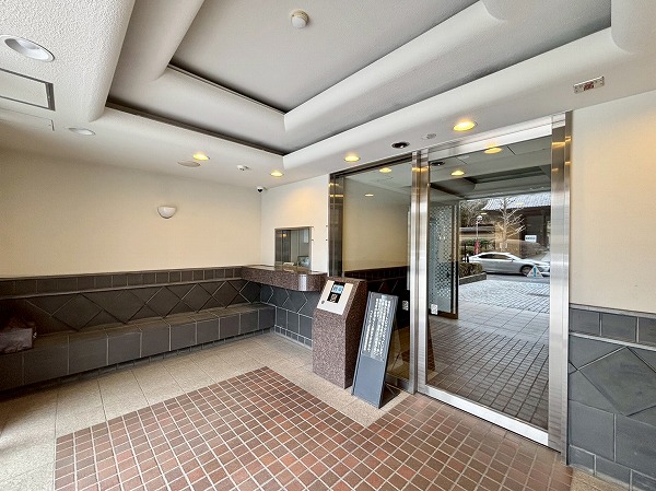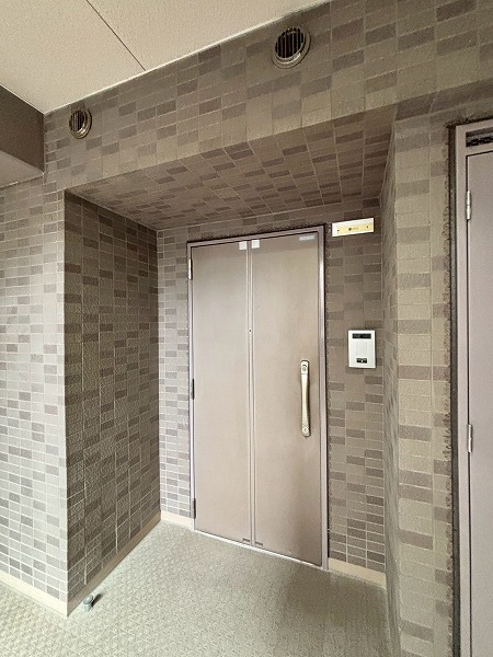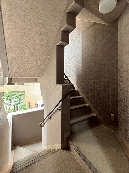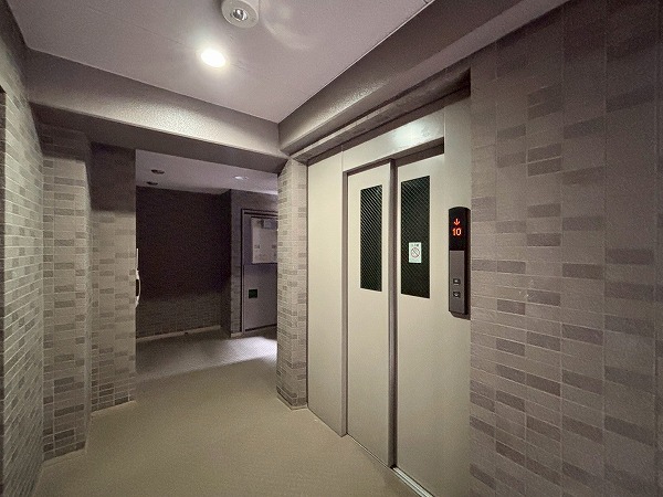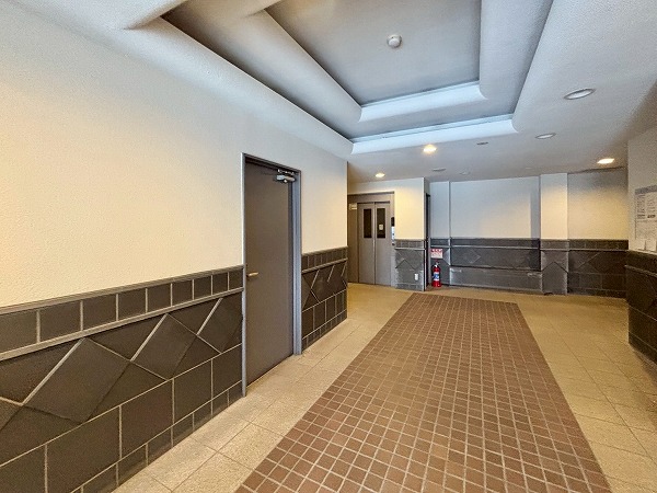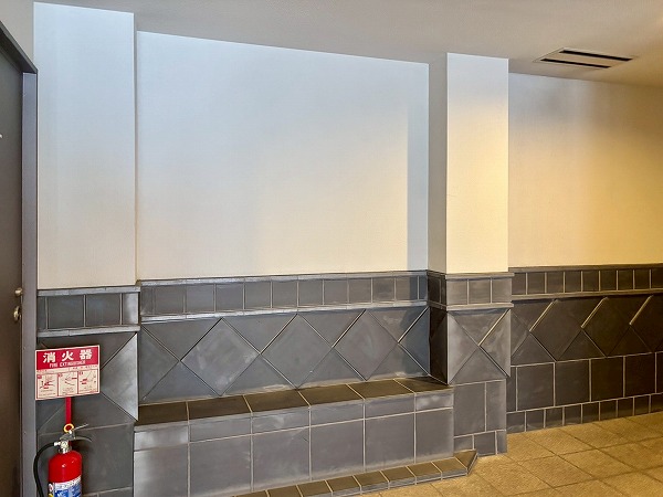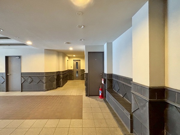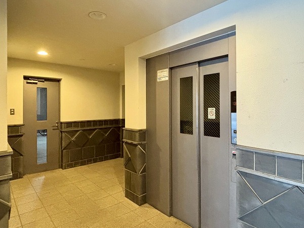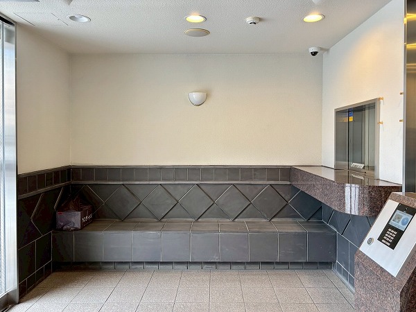 壁面のタイルのデザインがかわいらしいですね。ところどころにベンチがあり、住民の憩いの場所として使用できます。エレベーターは1基のみなので、時間帯によっては混雑することもあるかもしれません。