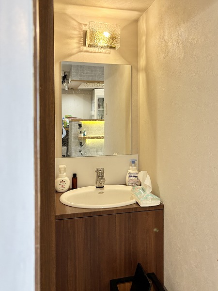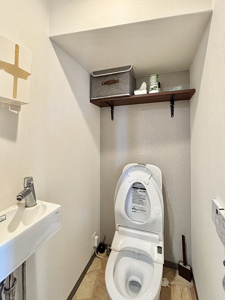 今回の2LDKにはトイレが2つあります。こちらのお部屋は事務所利用を相談することができるようなので、男性用・女性用で使い分けられるのは嬉しいですよね。右手のトイレには独立した手洗い場が。洗面台もあるので手を洗いやすくて快適です。
