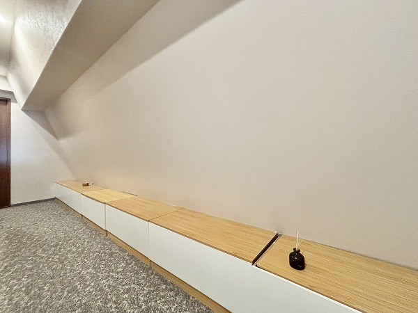 洋室2部屋はこちらの長い廊下を進んだ先に。PP分離がしっかりできている造りなので、急な来客時もプライベートな空間をしっかり隠すことができ安心ですね。廊下にこのように収納を置けば、スペースの有効活用にもなりますね。