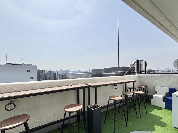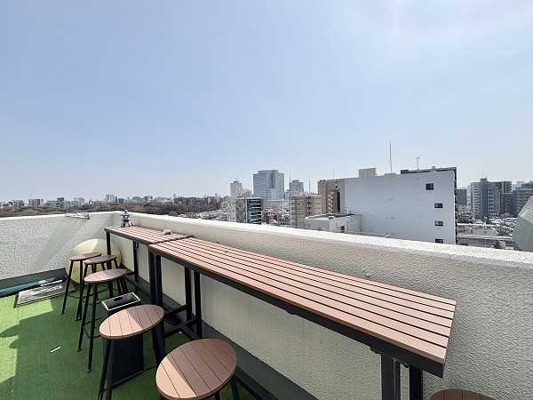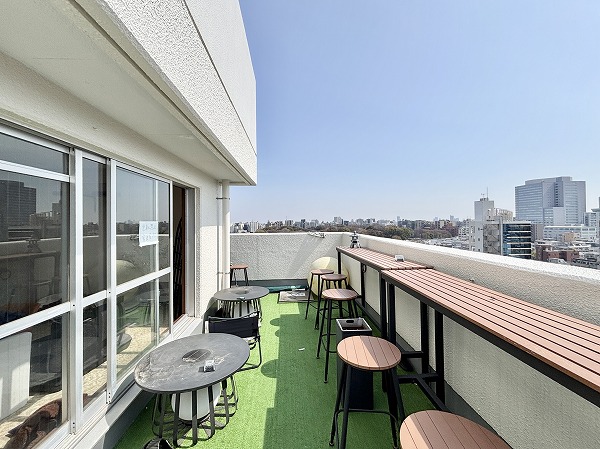 私のイチオシポイントは、南東側に面したテラス。後ほどご紹介するバルコニーと合わせて、広さは38.10㎡もあります。遠くのほうまで見渡すことができ、とても気持ちの良い空間でした。