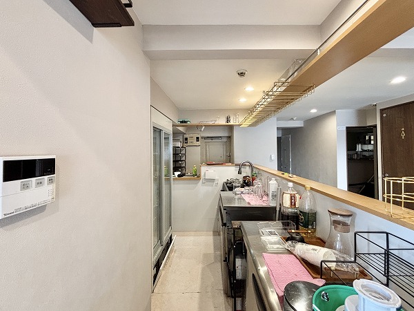 大きなカウンター付きのキッチン。カトラリーやプレースマットにこだわれば、ご自宅でカフェ気分が味わえちゃいます。ご友人を招いてのホームパーティにもピッタリな空間ですね。
