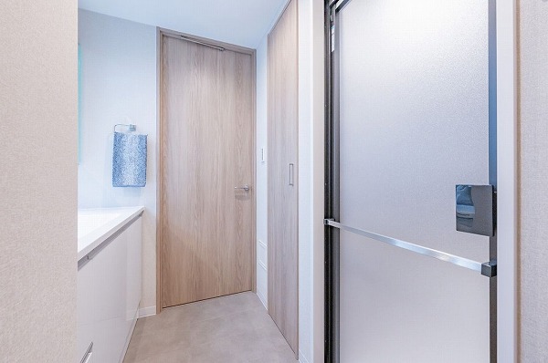 エントランスへ続くアプローチには屋根が設けられており、天候を気にせず出入りできるのが嬉しいポイント。雨の日でも落ち着いて雨具を準備でき、日差しの強い日は日傘の準備もスムーズに行えます。細やかな配慮が感じられる設計です。