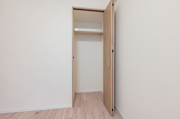 約6.0帖の洋室には大容量のウォークインクローゼットが備わり、収納力も充実。3方向のハンガーパイプにより衣類を整理しやすく、スーツケースや季節家電などの大型荷物の収納にも対応可能。住空間をすっきり保てるのは嬉しいですよね。