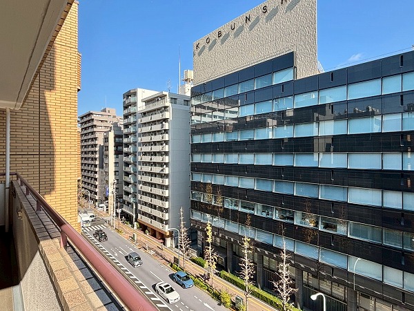 10.25㎡のバルコニーは南と西の2面に広がっていますが、南側は幅が狭く人が行き来することは難しそうです。ただ、南側が開けているおかげで明るい光がしっかりと感じられましたよ!「音羽通り」に面しているものの車の走行音はあまり気になりませんでした。