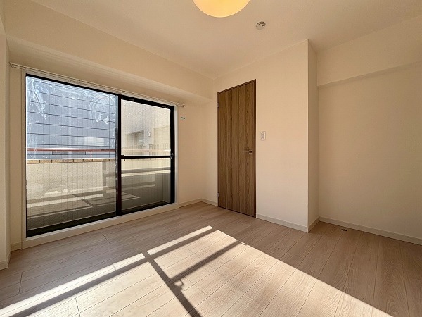 およそ5.7帖の洋室は2面採光になっていてとっても開放的♪ついついお昼寝したくなる気持ちの良いお部屋でした。セミダブルのベッドを置いてもまだゆとりがあるので、2人で使用しても快適に過ごせそうです。