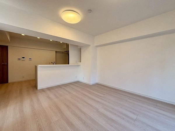 リビングダイニングキッチンは約14.4帖とゆとりがあります。これならダイニングテーブルやソファを置いてもまだゆとりが感じられますね◎シンプルな色合いなので、家具のレイアウトが考えやすいのも嬉しいポイントです。
