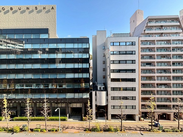 『中銀音羽マンシオン』の最寄り駅、護国寺駅はオフィス以外に学校も多く平日にはあらゆる世代の方が利用しています。オフィスは特に出版社が多く、そのためか街には落ち着いた雰囲気が漂っていました。駅前の「音羽通り」沿いにはスーパーやコンビニ、飲食店、警察署などがあり、暮らしやすそうな雰囲気です。マンション1階にも美味しそうなラーメン屋さんがありましたよ。