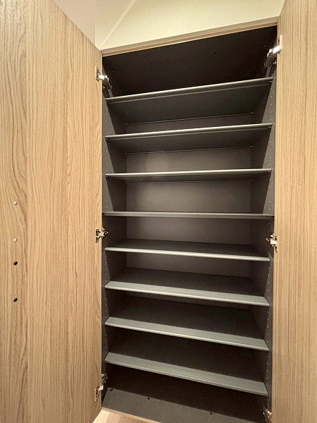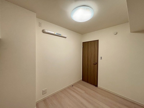 こちらは玄関左手に位置しているおよそ4.5帖のサービスルームです。窓が無い分日差しの影響を受けず、勉強やお仕事に専念できますね。壁面には通気性に優れたオープンクローゼットをご用意。お洋服をサッと取り出せる手軽さも魅力です。