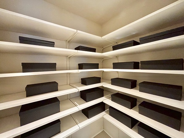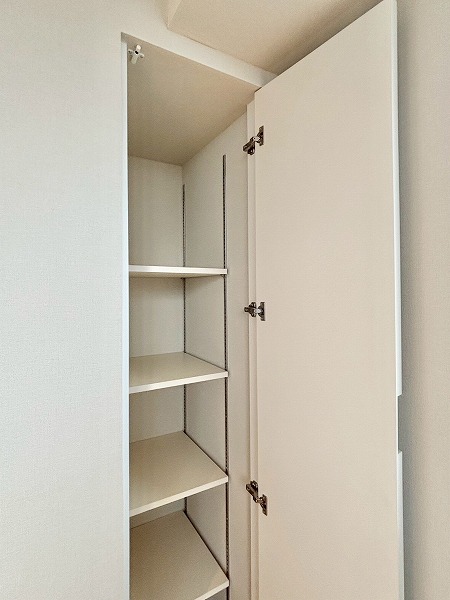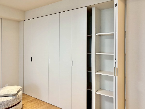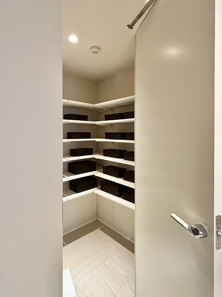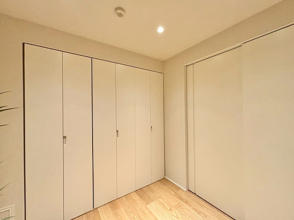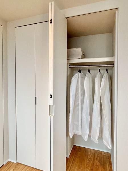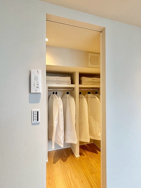 およそ6.4帖の洋室には、こちらのウォークインクローゼットがあります。かなり横幅があるので、その名の通りクローゼットの中を歩いてコーディネートを考えることが可能です!お洋服をたくさんお持ちの方も、これだけスペースがあれば保管場所に困りません。