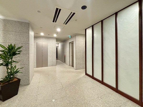 広々としたエントランスホールを奥まで進むと、エレベーターが1基備わっています。こちらもオートロックを解錠しないと作動しないシステムでした!セキュリティ面がしっかりしているのは嬉しいポイント。