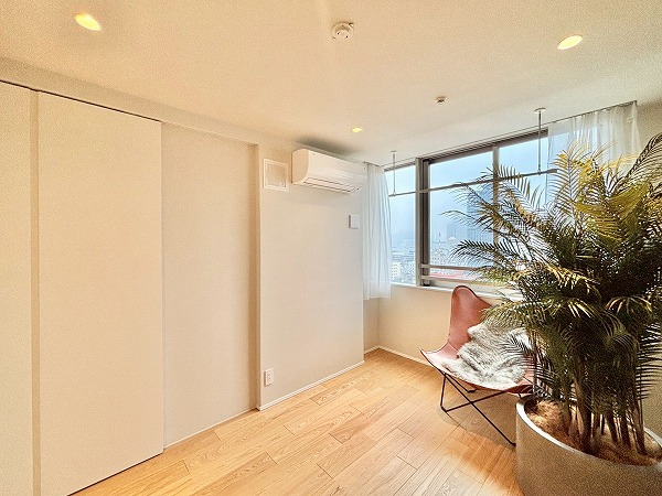 一番大きな約6.9帖は、角部屋ならではの2面採光になっています。明るい光が射し込む気持ちの良い空間です。洋室は3部屋ともエアコンが新設されており、オールシーズン快適に過ごせますよ。お引越しの費用を抑えることができるのも嬉しいですね。