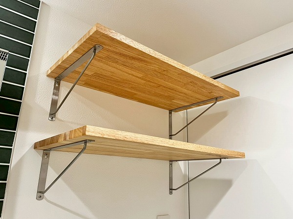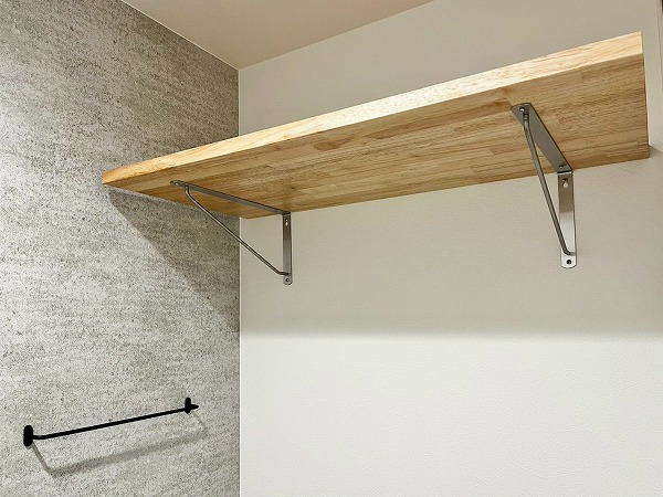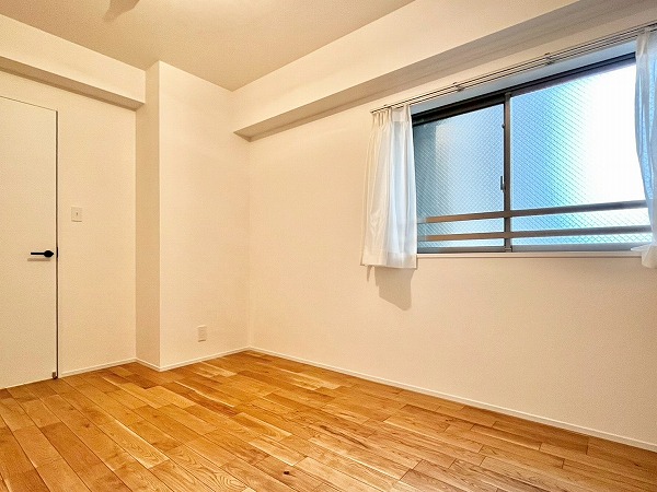 6.3帖のベッドルームには扉付きのクローゼットがダブルで備え付けられ、お洋服をしまっておくのに申し分のない収納力。飾り棚は床と木材が統一され、お部屋の雰囲気を邪魔しません。寝る前のケアアイテムなど綺麗に飾っておくことができそう。