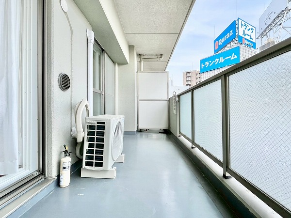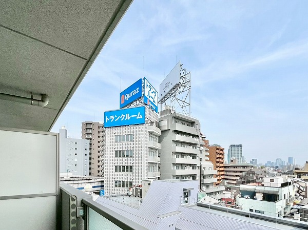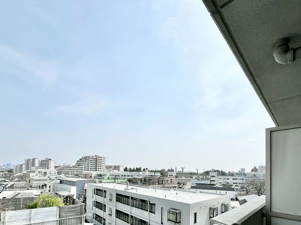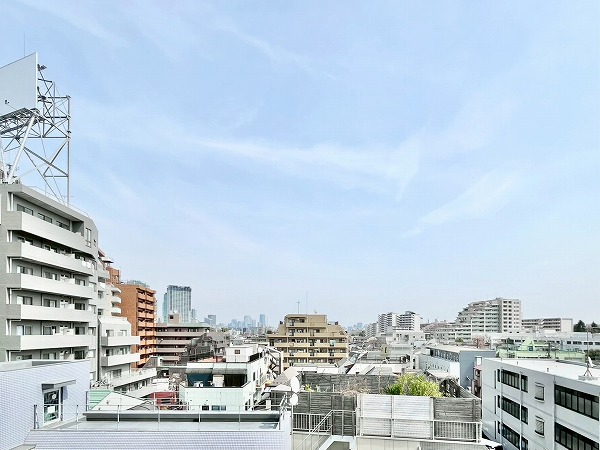 バルコニーの前面には遮るものがなく、眼下には住宅や低層のビルが、遠くには都心のビル群がかすかに見える気持ちの良い眺望が望めます。ちょっと夜風に当たれば、都心の明かりを感じながらのじんわりとしたリラックスタイムになりそうですね。風通しがいいので、洗濯物が良く乾き、換気もスムーズに◎