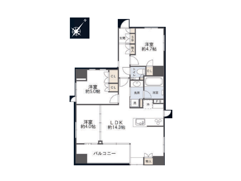 リビングダイニングに隣接する約4.0帖の洋室はスライドドアで仕切れるフレキシブル空間。さらに約5.0帖の洋室もLDKから直接アクセス可能で、子ども部屋や書斎、ゲストルームとして多彩に活用できますよ。
