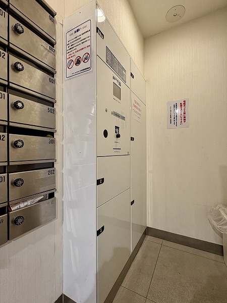 ホワイト大理石デザインのエレベーターホール。フロア間はエレベーターでスムーズに移動でき、買い物帰りや荷物が多い日も快適です♩