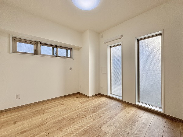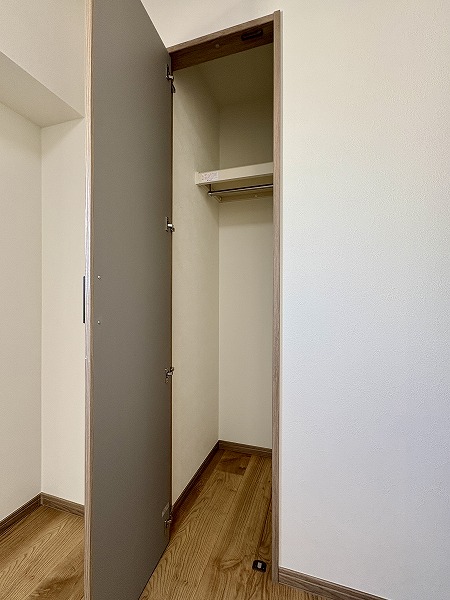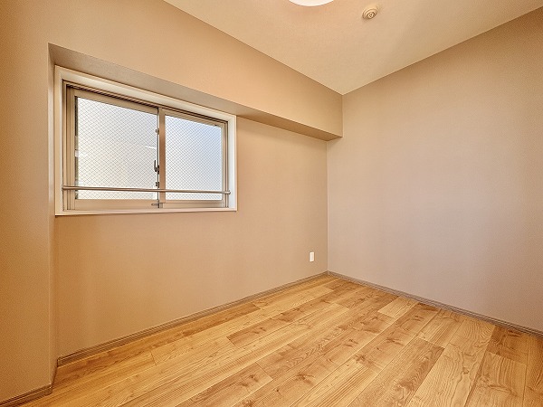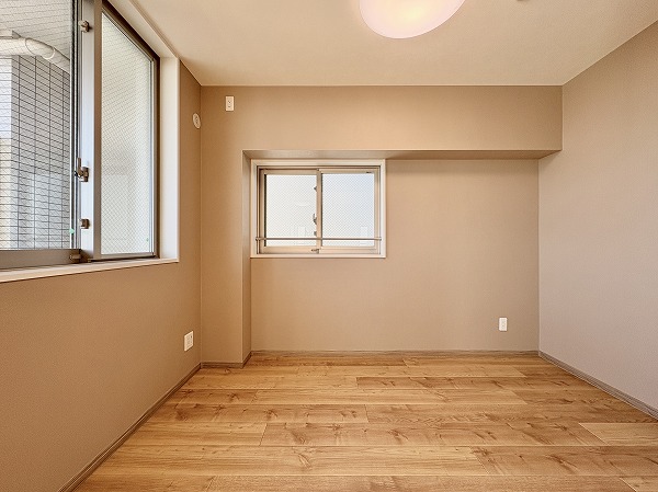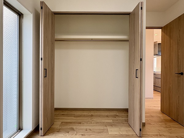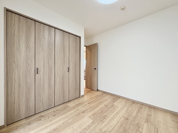 廊下に独立した約4.7帖の洋室は主寝室に最適。2面採光で明るく風通しも良好ながら、リビングや廊下から離れているため静かに過ごせます。クローゼット付きで衣類も整理でき、寝室だけでなくワークスペースや趣味部屋としても◎