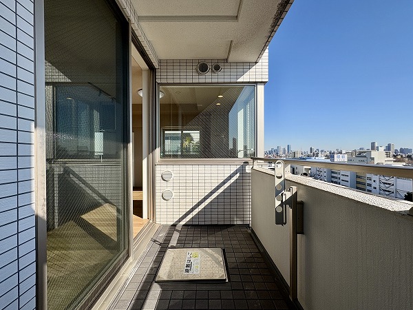 バルコニーに出ると目の前に広がる青空と陽光が心地よく、開放感に満ちた空間が迎えてくれます。南東向きで日当たりも抜群。高さのある建物に邪魔されないため、洗濯や家庭菜園、リラックスタイムなどさまざまな使い方が楽しめます。