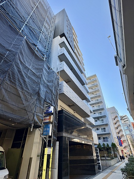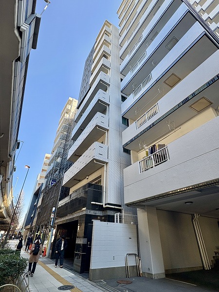 三軒茶屋駅から徒歩3分の好立地に佇む『アジールコフレ三軒茶屋』。黒のタイルを敷き詰めたアプローチと赤い光沢タイルのエントランスが、訪れる人を上質な雰囲気で迎えてくれます。