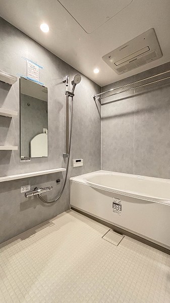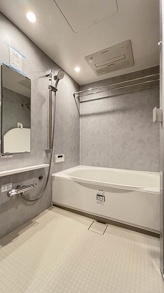 1418サイズのバスルームは、足を思いきり伸ばしてゆったりくつろげる広さ✦追い焚き機能でいつでも理想の温度をキープでき、浴室乾燥機付きで雨の日や忙しい日もスマートに洗濯物を乾かせますよ。