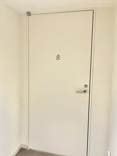 オートロックを抜けエントランスへ入ると、カフェのようなお洒落なラウンジが用意されていました。ソファや本が置いてあり、作業の他にも住人同士の交流もできるかもしれませんね。カウンターには管理人の方がおり、気持ちよく挨拶をしてくださいました。