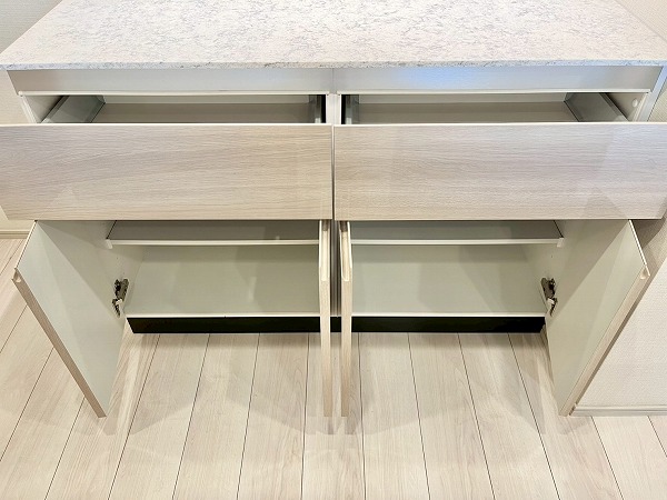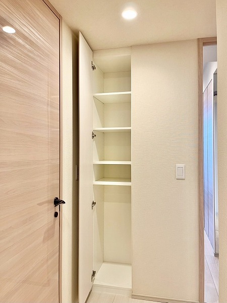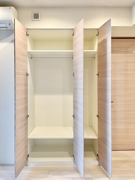 廊下やキッチンにはデッドスペースを逃さず壁内収納が設けられ、2つの洋室内にも大容量のクローゼットを複数設置。お洋服や趣味の物の収納場所に困ることはなさそうです。