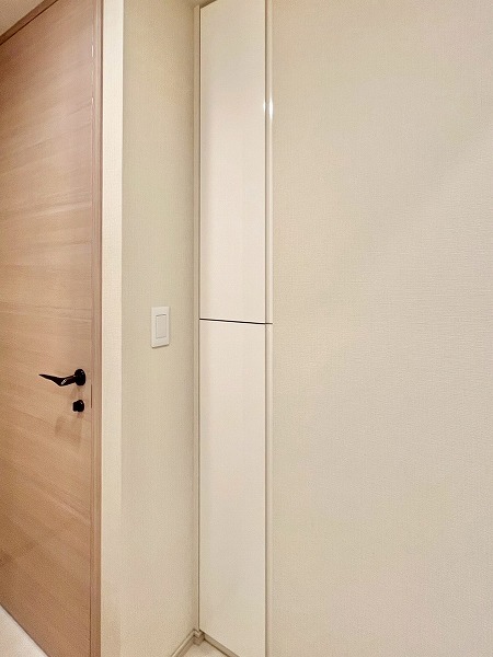 5階に位置する2LDKのお部屋は、オフホワイトを基調に間接照明の広がりが高級感をプラスし、品を感じる空間に仕上がっています。壁内に収められた収納はお部屋の印象を損なわない、すっきりとしたデザイン。生活感の出るものを上手に隠して、美しく整った空間を保つことができます。