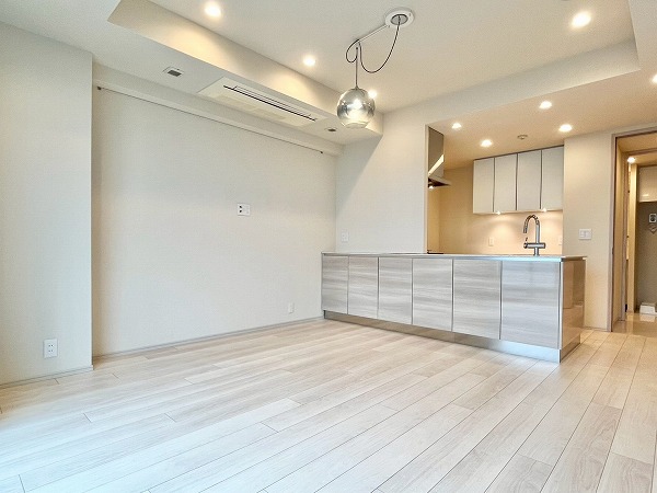 ご紹介した2LDKのお部屋は、ホワイトやベージュを基調とし、艶のある質感で整えられた、洗練の空間。夜には間接照明が高級感を醸し出し、上品なリラックス空間として寄り添ってくれそうです。