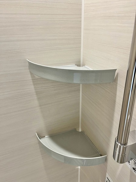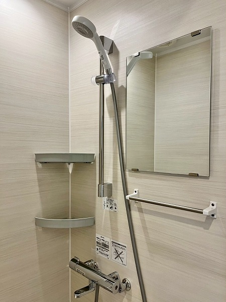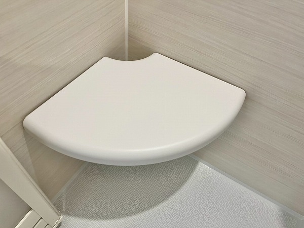 湯船がなく、シャワーのみのスタイリッシュな仕様。普段からシャワー派の方にとっては、むしろ合理的といえるつくりは、掃除がしやすく、日々の手間はかなり軽くなります。バスチェアも備え付けられているので、ゆっくり過ごしたい日にも対応。