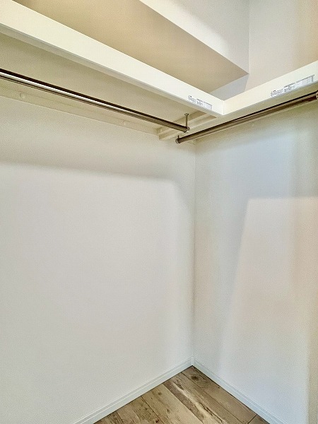 暮らしの中心となるメインルームにプラスして、余白を生み出す約5帖の洋室。ウォークインクローゼットに生活感が出やすいものをまとめることで、空間の整った印象を保つことができます。ベッドと一緒に間接照明を取り入れれば、落ち着いた光に包まれ、ゆったりとした夜のひとときを楽しめそうです。