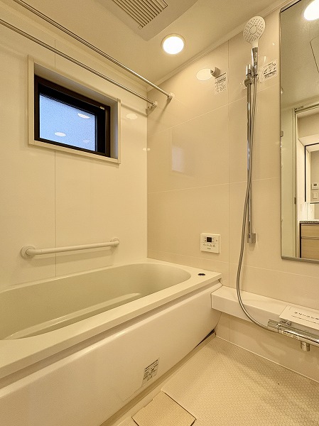 木目調のパネルを採用し、癒しを与えてくれるバスルーム。出窓があり、優しい陽光を感じられるので、朝風呂も気持ちよさそうです♫見た目の美しさだけでなく、浴室乾燥機や追い焚き機能など、機能面も充実しています◎