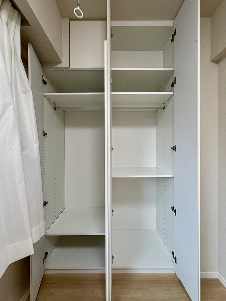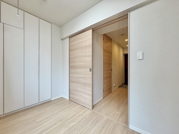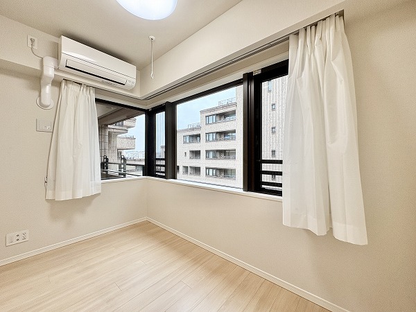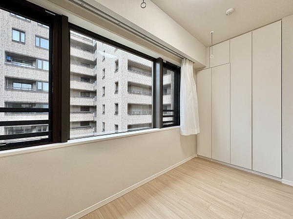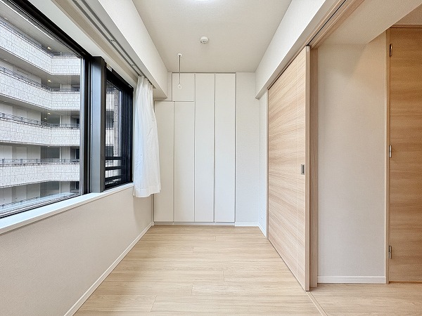 約4.0帖のベッドルームは大きな窓が圧迫感を軽減してくれて開放的✦廊下から出入りでき、独立性が高く、睡眠の質も向上しそうですね。収納力のあるクローゼットが備わっているので、荷物をしまって空間を有効活用しちゃいましょう。