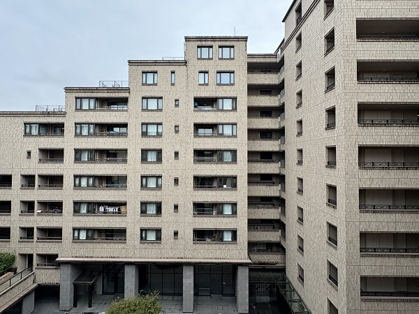 こちらの建物が『アトラス池尻レジデンス』。5,900m²を超える広大な土地にあります。時を経ても美しく感じられる素材を採用し、落ち着きのある外観が魅力的✧植栽も豊かで、癒されますね。