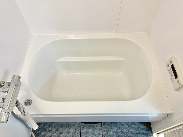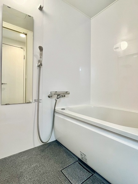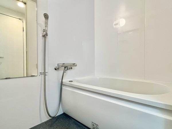 清潔感のあるホワイトを基調としたバスルームは、すっきりとした印象のリラックススペース。広さのあるバスタブにゆったりと身を預ければ、1日の疲れが癒されそうです。バスタブ周り・壁面は凹凸が少ないシンプルな設計で、お掃除も楽々行えます。