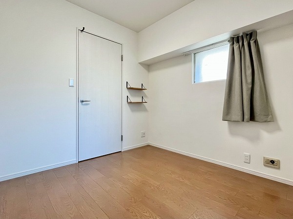 洋室は約4.8帖とシングルベッドにぴったりの広さ。きなクローゼットにはハンガーパイプがあり、丈の長い洋服も整理可能です。南東向きの大きな掃き出し窓からはバルコニーへアクセスできますよ☀