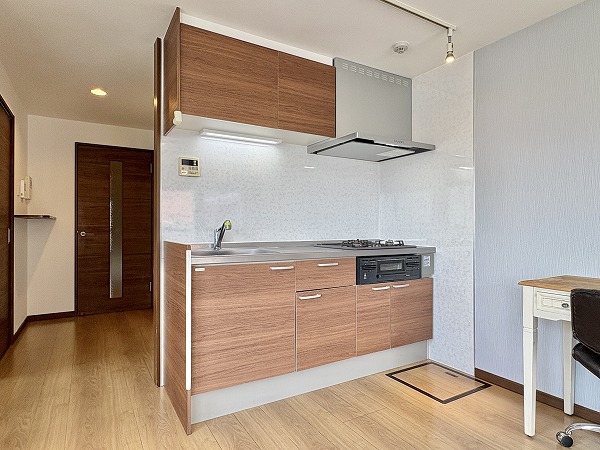 『マンション池尻』の10階に位置するお部屋です。南東角部屋のため陽当たり・風通し・眺望良好☀窓の外には遠くまで見通せるスッキリとした景色が広がっており、外からの視線を気にすることなく過ごせます◎内装は新規リノベーション済み。オフホワイト、ベージュ、グレーなどを合わせた優しい印象の内装がとっても可愛いです。間取りはひとり暮らしにおすすめな専有面積42.47㎡の1LDK。キッチンの存在感が大きめなレイアウトなので、リビングとダイニングを兼ねて使えるような家具配置にすると良さそうですね。メインルームをダイニングとして使い、洋室をリビング兼寝室にするのも良いと思います。ペットの飼育も可能なので、ぜひ一度ご相談ください。 ライター:yuki【25J16】