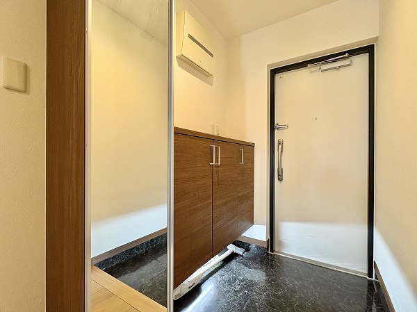明るい雰囲気のエントランス。オートロックと防犯カメラ付きでセキュリティ対策も万全です。ホールには管理人室があるため、万が一困ったことがあっても管理人さんに相談できそう。