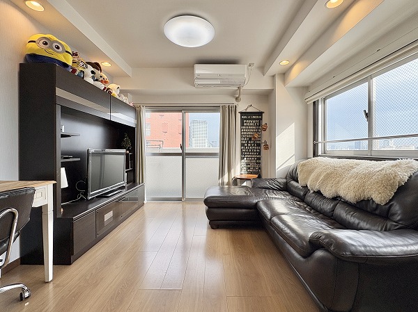 池尻大橋駅から徒歩5分の駅チカ物件『マンション池尻』。こちらのお部屋はその最上階・12階に位置する1LDKの南東角部屋です。専有面積は42.47㎡と、ゆったりと暮らしたい単身の方におすすめな広さ。新規リノベーションは行われていませんが、現地で見たところそれほど使用感は強くなく、クリーニングのみでも十分快適に暮らせそうな印象でした。角部屋なのでメインルームは二面採光☀日中であれば電気がいらない明るさで、通気性の良さも抜群です◎窓の外には都会らしい景色が広がっているのですが、最上階のため目線の高さに電柱や電線がなくとてもスッキリとしています。ペットの飼育は小型犬や猫のみ相談可能。ぜひ一度お問合せください。 ライター:yuki【25K27】
