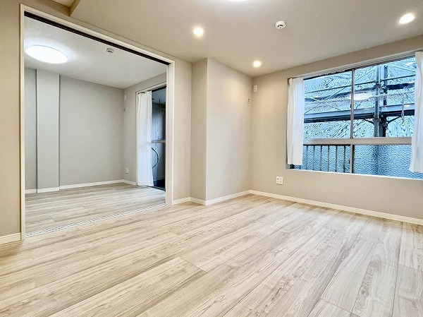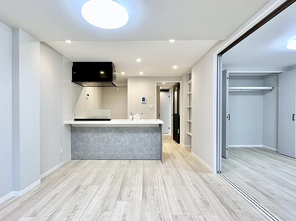 マンション最上階に位置する2LDKのお部屋は、2026年春にリフォームを終え、グレー×ホワイトの北欧テイストが素敵な空間に生まれ変わりました。メインルーム・寝室にプラスして1部屋使うことのできる間取りは、パートナーとの2人暮らしでもゆったりと快適に過ごせるのが魅力。
